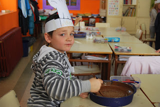 El viernes 11 de noviembre, enlazando con "las recetas" que estudiamos en lengua, pusimos en práctica una de ellas: PASTEL DE CHOCOLATE (o no) AL MICROONDAS.