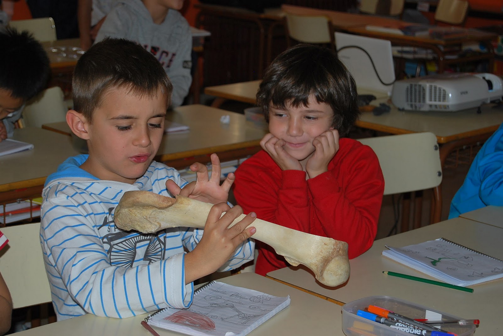 Nos ha enseñado el fémur de una vaca cortado por el centro y hemos visto lo que hay por dentro.