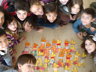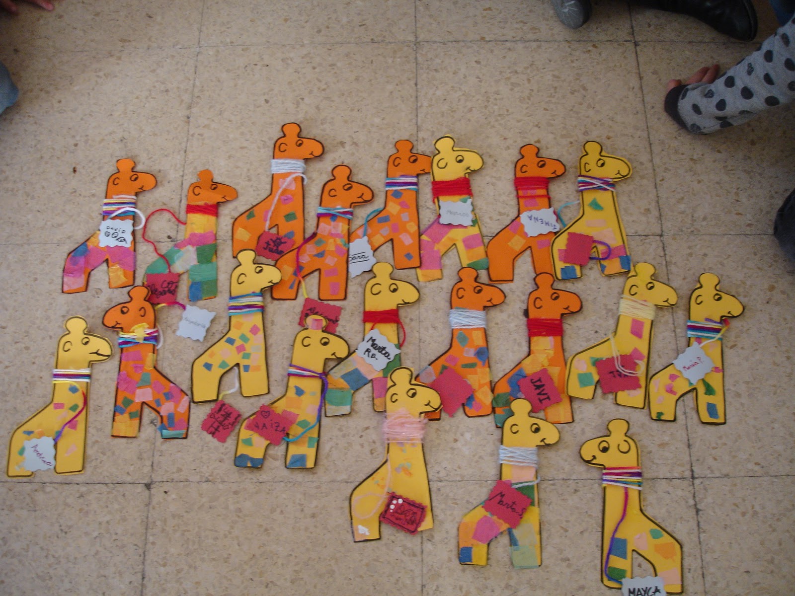 Esta semana hemos estado haciendo unas jirafas muy abrigadas que nos servirán como punto de libro; así aún leeremos más y más a gusto, porque han quedado estupendas: