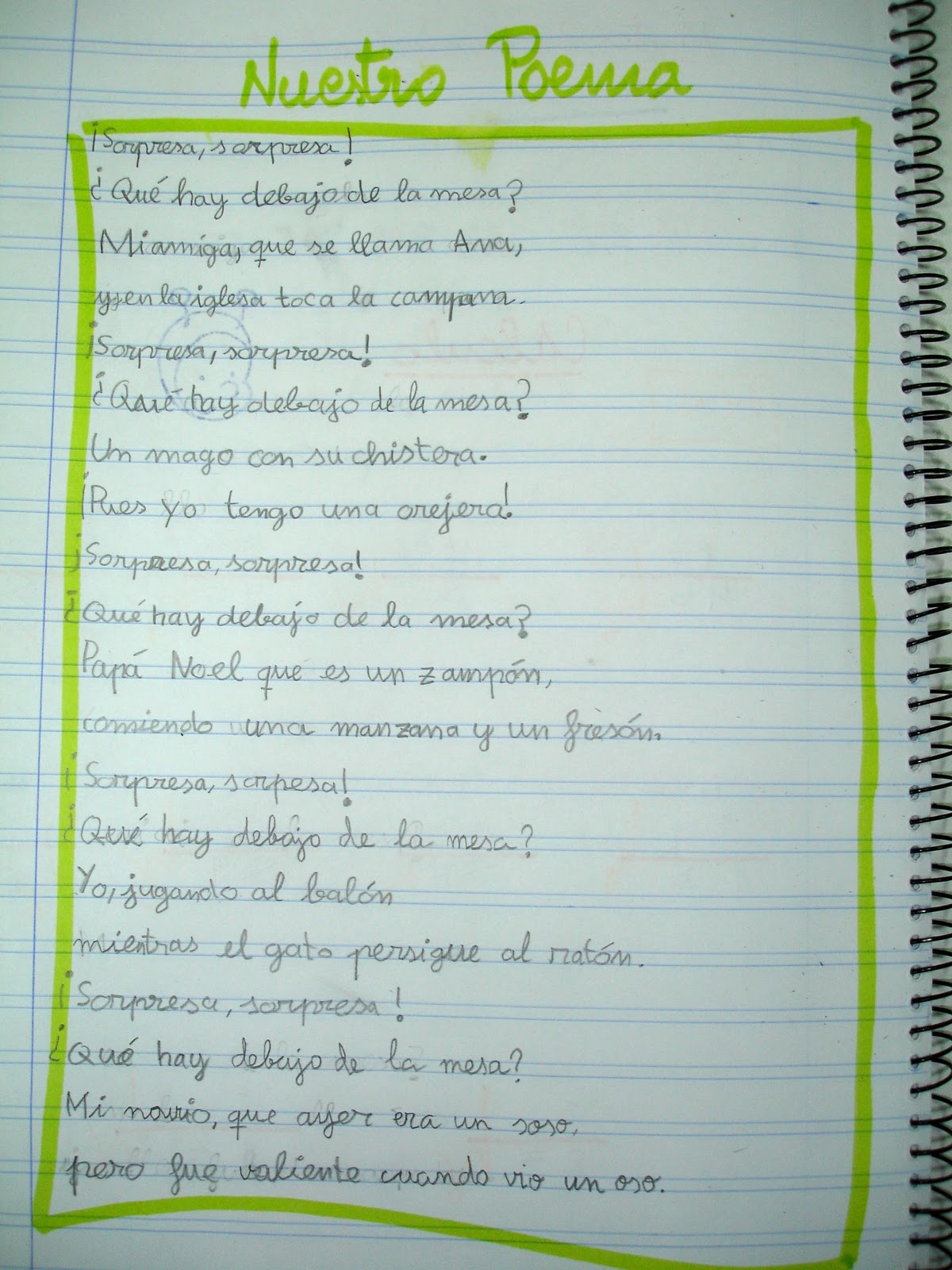 También hemos hecho un poco de poetas y, entre toda la clase, hemos construido un poema con mucho ritmo: