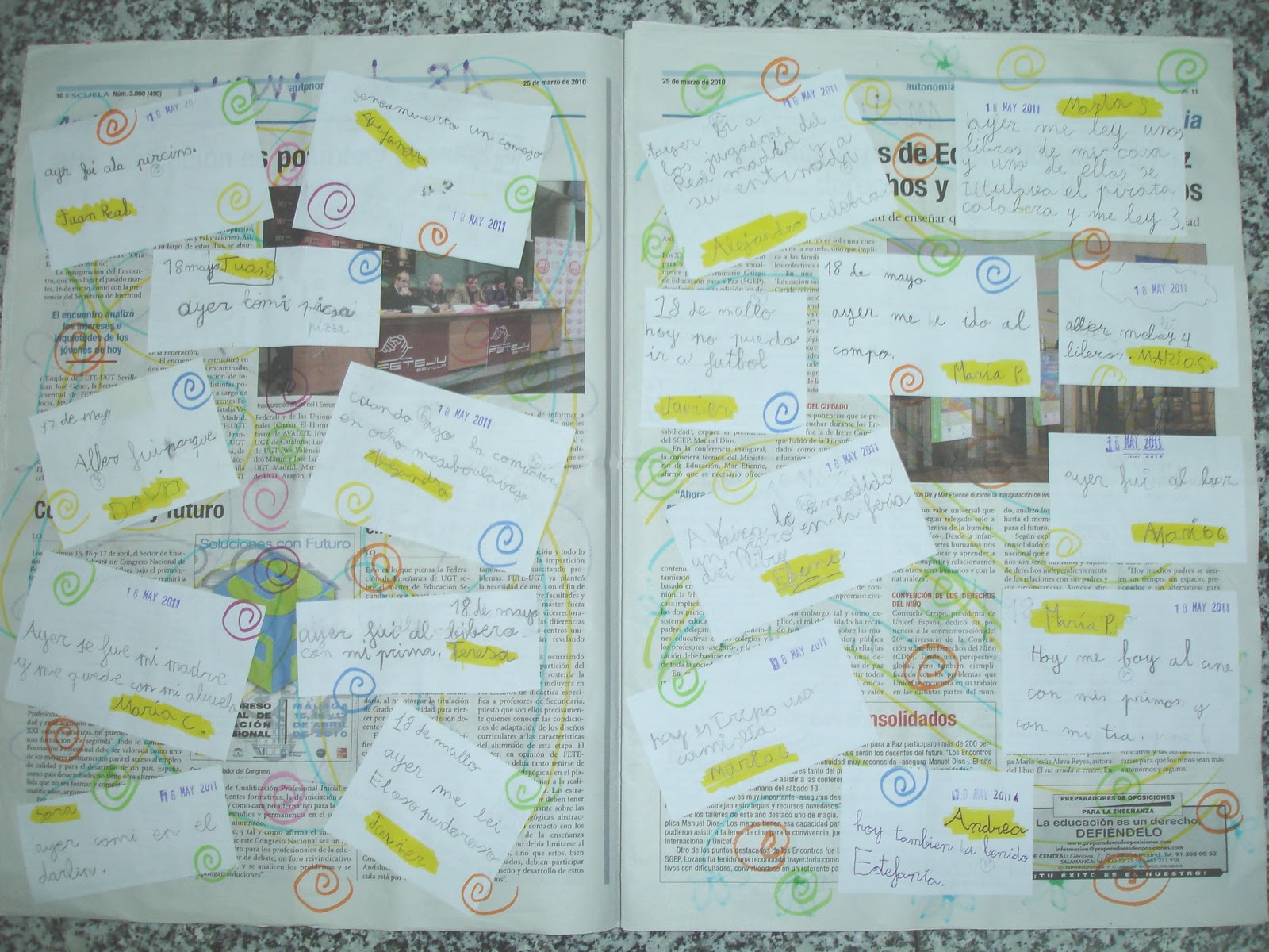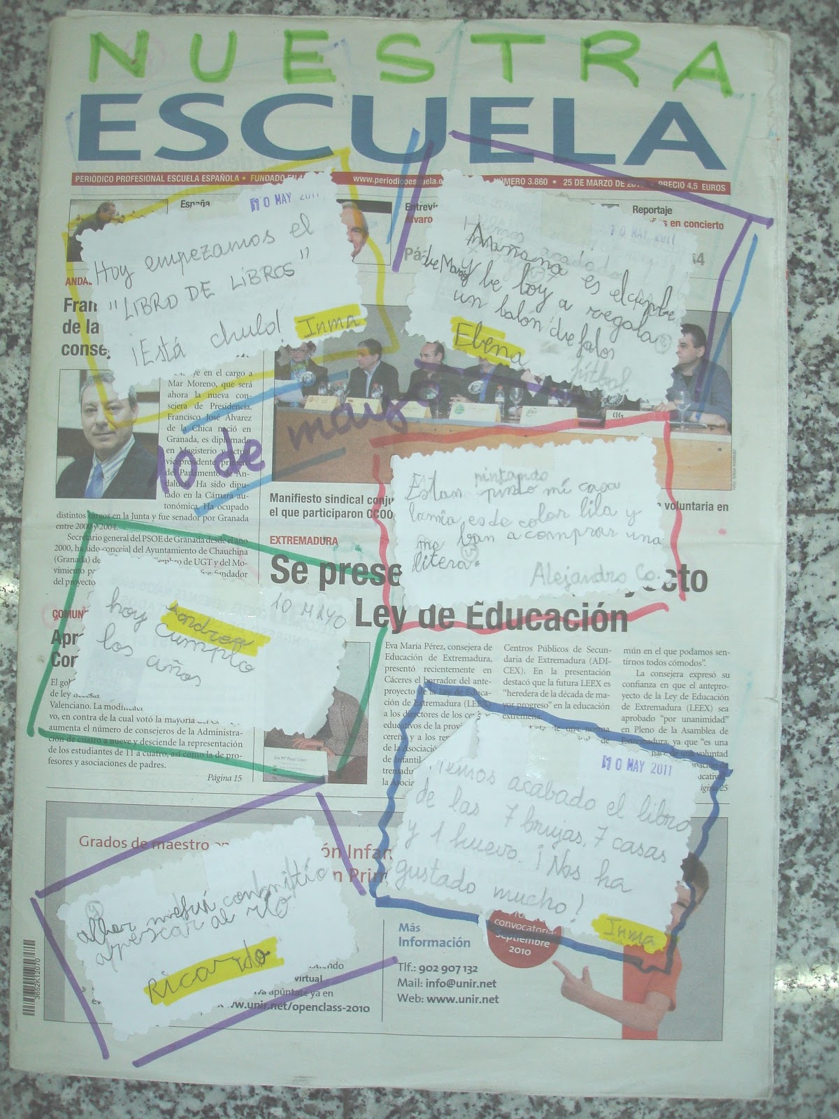 Lo prometido es deuda: el curso pasado quedó pendiente el montaje del periódico con las noticias que los niñ@s fueron elaborando desde mayo. Tal vez no se lleguen a leer muy bien en las fotos pero en el Cole lo tenemos también para quien quiera echarle un vistazo.