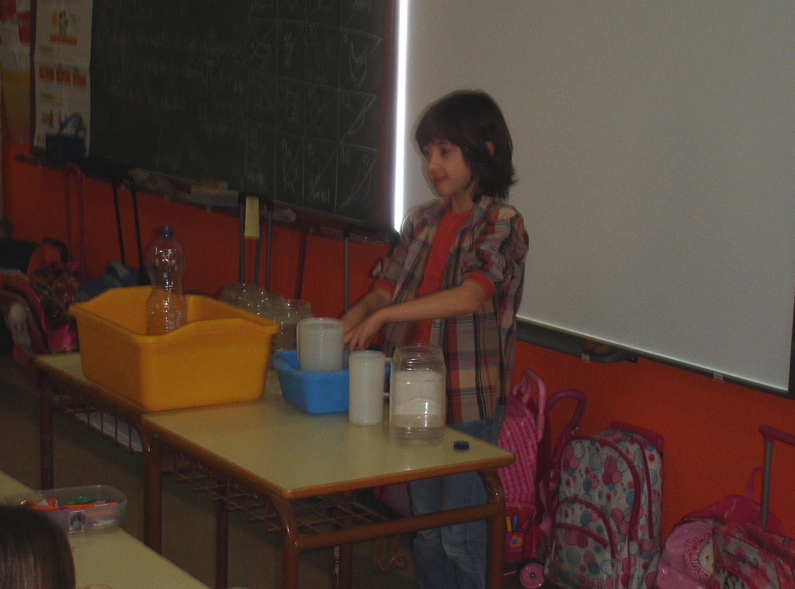 Estas fotos muestran cómo hemos trabajado "en vivo y en directo" con las medidas de capacidad, comprobando las equivalentes y también los pesos del litro, el medio litro y el cuarto.