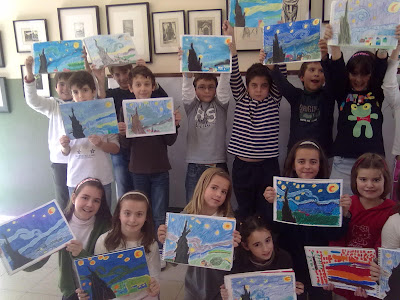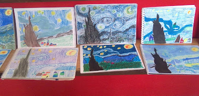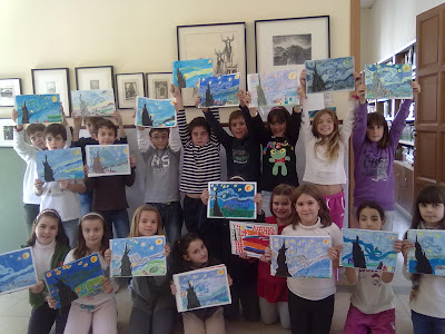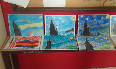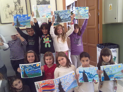 Seguimos haciendo actividades en plástica, hemos hecho un cuadro precioso "La Noche Estrellada" de Vincent Van Gogh. Cada uno ha dado su interpretacion del cuadro, lo hemos realizado con ceras blandas. Aquí os dejo cómo han quedado.
